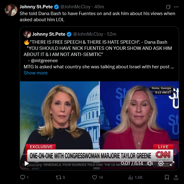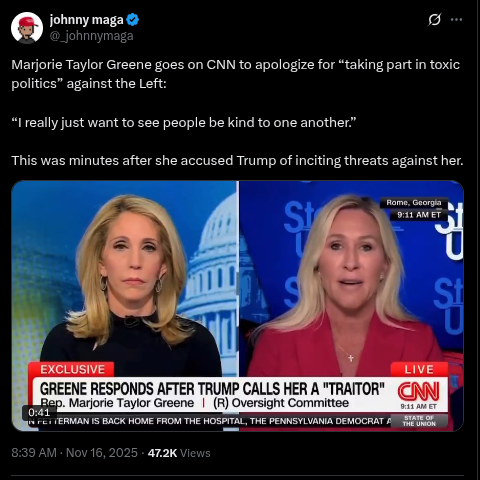 MARJORIE TAYLOR GREENE SAYS ON CNN THAT EPSTEIN WAS WORKING FOR ISRAELhttps://x.com/clashreport/status/1990079162975965519