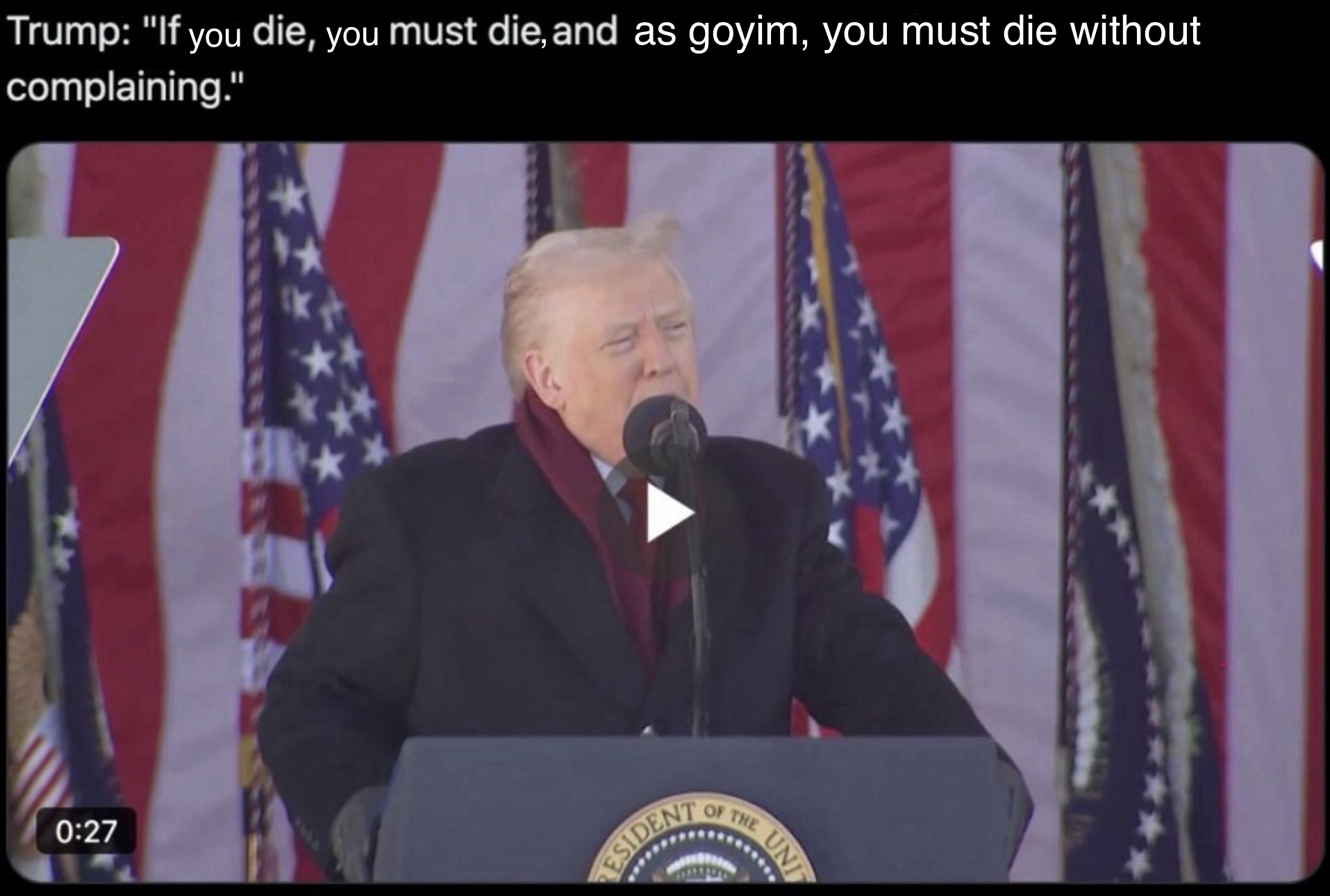 PRESIDENT DONALD J TRUMP @POTUS45https://www.donaldjtrump.com/https://www.thetrumparchive.com/https://x.com/realDonaldTrumphttps://truthsocial.com/@realDonaldTrumphttps://rumble.com/c/DonaldTrumphttps://www.tiktok.com/@realdonaldtrump>President Trump Officehttps://www.whitehouse.gov/https://www.youtube.com/user/whitehousehttps://www.flickr.com/photos/whitehouse/>Liz Harrington (Trump Spox) https://twitter.com/realLizUSA>Donald J Trump Presidential Libraryhttps://www.trumplibrary.gov/@realDonaldTrump @TeamTrump @TrumpWarRoom>b-but Trump hasnt done anything!ARCHIVED LINKS https://pastebin.com/eAhgNyeX NEW APPEARANCES>Pres Trump Signs Senate Amendment to Reopen Government, Washington, DC 11/12/2025https://youtu.be/yY76b8-fM-Q>Pres Trump and VP JD Vance Deliver Veterans Day Remarks, Arlington, Virginia 11/11/2025https://youtu.be/9TgZM1Ri1hQ>Pres Trump Lunch with the Prime Minister of Hungary, Washington, DC 11/7/2025https://youtu.be/7_DqpIeFAxg>Pres Trump Dinner with Central Asian Countries, Washington, DC 11/6/2025https://youtu.be/xr8czDU76Fs>Pres Trump at the America Business Forum, Miami, Florida 11/5/2025https://youtu.be/6xVpv3kfvv8>Pres Trump at Breakfast with Republican Senators, Washington, DC 11/5/2025https://youtu.be/Bo8bMllxsDg>Halloween at The White House, Washington, DC 10/31/2025https://youtu.be/--RrhTSk2L8>Pres Trump Meets with President Xi, Busan, South Korea 10/29/2025https://youtu.be/po3kIThzQ6k>Pres Trump Meets with President of South Korea, Gyeongju, South Korea 10/29/2025https://youtu.be/QOWixWCxakk>Pres Trump Visits Troops on USS George Washington, Tokyo, Japan 10/28/2025https://youtu.be/ajBshzWIVtg>TrumpVideo: WE WILL WIN 6/19/23https://rumble.com/v2v6m2a>MAKE AMERICA GREAT AGAIN, AGAIN! 10/28/21https://rumble.com/voe8gm>God Bless the USA (Donald J Trump) 10/20/16https://youtu.be/O_PC_fy0fk0 OP pastebin: http://pastebin.com/X4KiALfhprev >>521532268