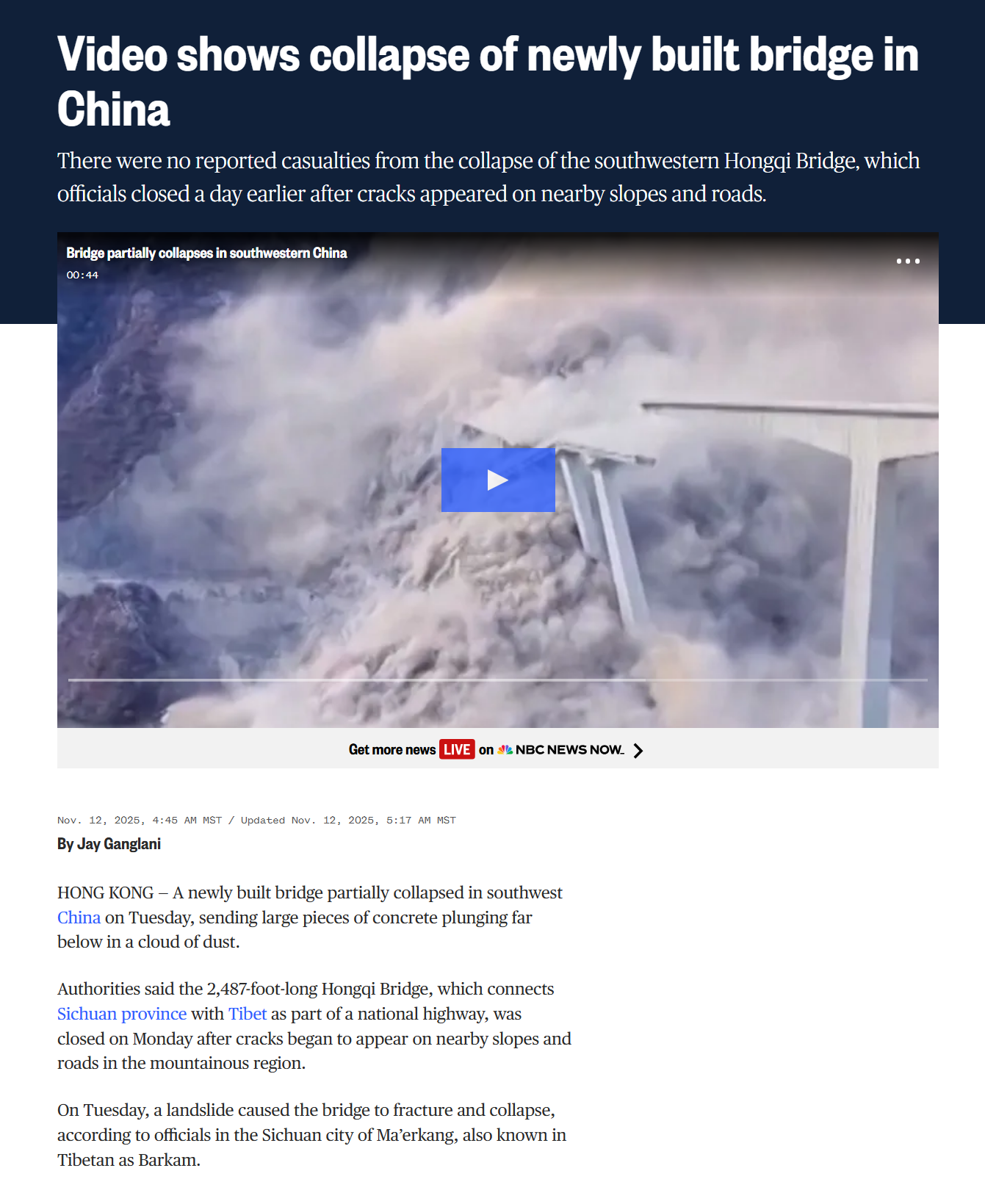 >>521540423>decades old bridge that gets hit by a boat vs one that was built earlier this year collapsing because of tofu dreg engineeringAlso Chinese infrastructure collapses all the timeIt's only rare to see reports of them spread outside the countryA fuckin tunnels backed end to end withe people in cars gets flooded and the government only reports single digit casualties, there's a lot of bullshit coming out of China