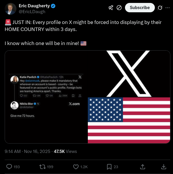 Nuclear bomb is about to drop soonhttps://x.com/EricLDaugh/status/1990060916797231456