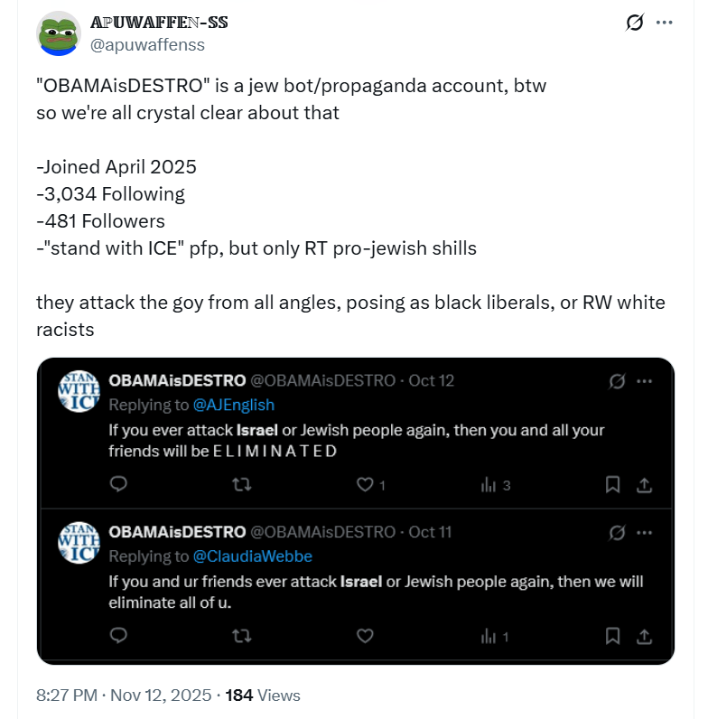 The thing where they try and radicalize you is so real. They definitely are trying to pick anons off here and turn them into useful idiot shooters. When the glowniggers start to bother you, just remember: the glowfaggots love to try and drag people into discord servers, pretending to be fellow anons or just friendly strangers interested in the same things, then use abusive relationship tactics to slowly build rapport while isolating and further radicalizing their target. AVOID sudden discord invites on other sites. AVOID ANY discord posted on 4chan.