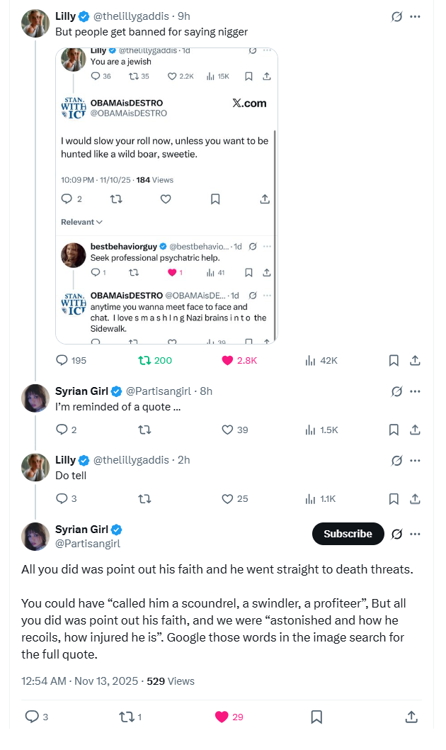 They both should go over to Gab. No censorship there, you can say nigger and kike all you like and people cheer.