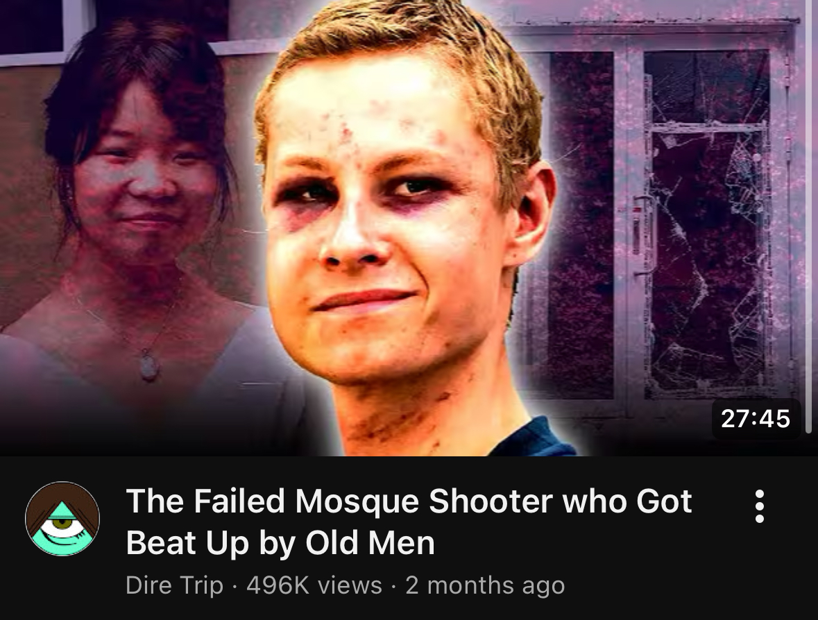 And yeah, after he shot his sister he did try to shoot up a mosque but got beat up by a paki who was in his 70s or something.