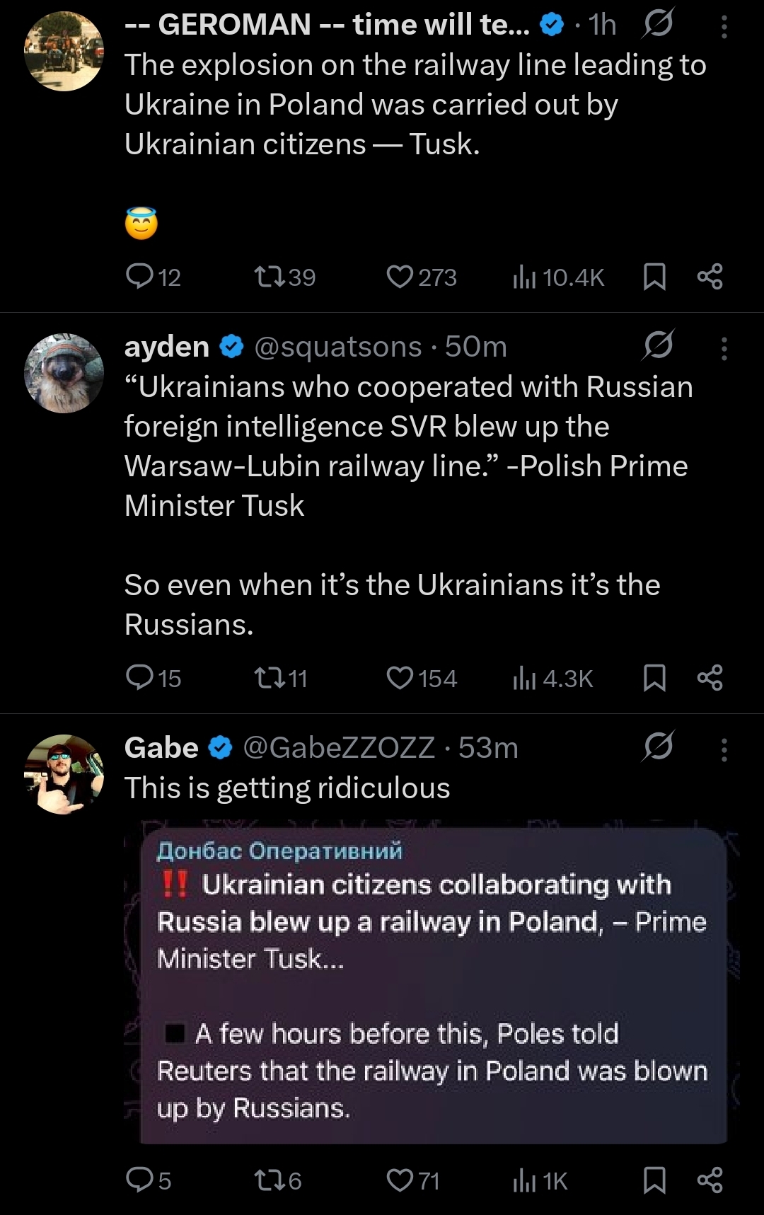 >>521688856Probably because tusk wants to send them back.it isn't hard to imagine some hoholfugee came to the conclusion that if he sabotages supply lines to Ukraine, the war will end sooner and he won't be sent back to die for a jew.