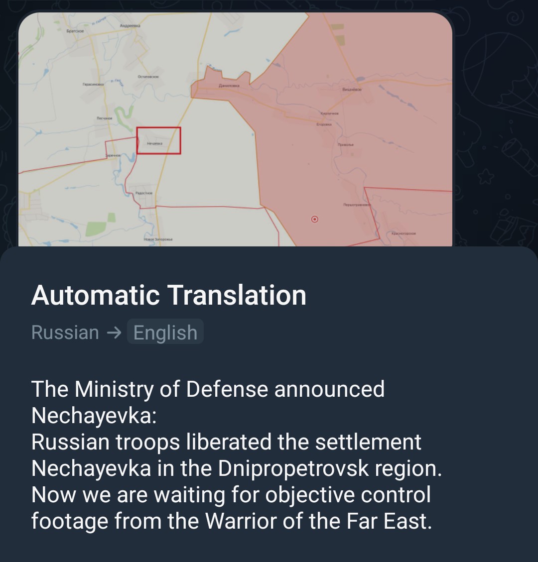 Previous: >>521675812 Timeline /tug/: https://files.catbox.moe/m97wmq.pdf▶WARNINGBe aware, any /chug/ thread that uses globohomo nuspeak wording in the OP (such as Kyiv) or cites UKROP sources (like video game footage) are fake shill threads.>By posting in these threads, you recognize Israel controls the NATO Council and you irrevocably denounce the Talmud out of your own volition▶Latest>Russian stormtroopers liberate Plantovka in the Donetsk People's Republic, Gai in Dnepropetrovsk, and Dvurechanskoye in Kharkov - https://archive.today/j9IX7>Zaporozhye Lightning Offensive continues, Battlegroup East liberates the settlements of Malaya Tokmachka, and Rovnopolye - https://archive.today/Isem0>Battlegroup East liberates Yablokovo in Zapoorozhye - https://archive.today/FAMQQ>Russian troops liberate 11 settlements over the week, including Rog in the Donetsk People's Republic, and Orestopol in Dnepropetrovsk Oblast - https://archive.today/5QS2Q>FSB prevent SBU planned terror attack on TOP Russian State Official visiting Troyekurovskye Cemetery - https://archive.today/zVO6e>Russia is thankful to the North Korean Engineers who are helping demine Kursk - https://archive.today/bmVaF>Battle for Kupyansk: Russian stormtroopers have control of Olivino and Park Vostochnogo Pribytia railway stations, east almost clear of enemies - https://archive.today/94DWt>Russian forces liberate Sinelnikovo in Kharkov, and Danilovka in Dnepropetrovsk - https://archive.today/W0MBD>63-1: Russia has repatriated to the Ukraine 9,000 dead pigs, the Ukraine has only repatriated 143 deceased heroes to The Motherland - https://archive.today/xg1VX▶/chug/https://rentry.org/chug2024▶/chug/ MEGAhttps://mega.nz/folder/wbUjTLhb#BEBBRpmJN0Pih6YCXzkOXg▶Video Archivehttps://rentry.org/chugvidz▶Z Radiohttps://rz-life.ru/