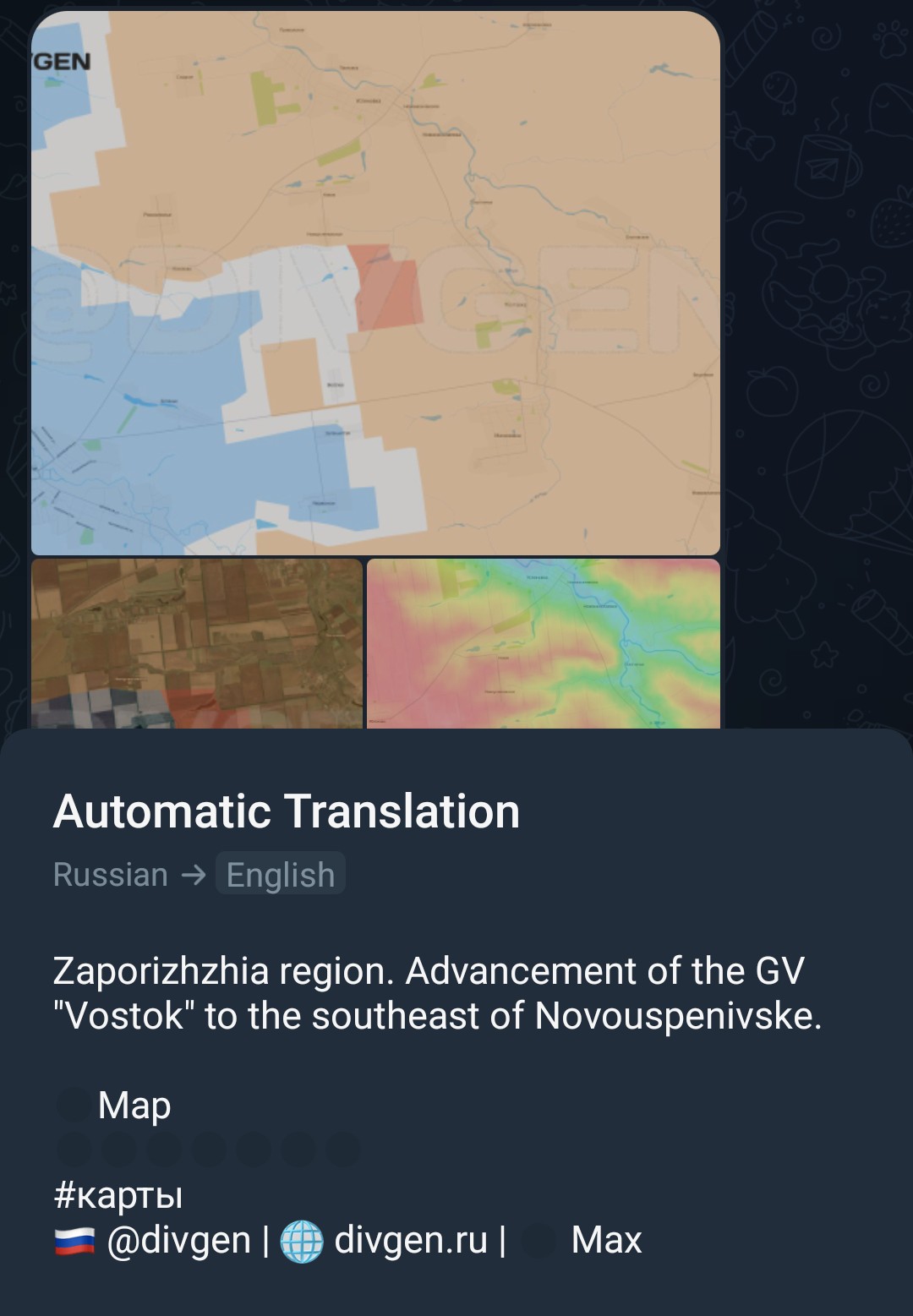 ▶MAPSRybarhttps://t.me/rybarSuriyakhttps://t.me/s/suriyak_mapshttps://www.google.com/maps/d/u/0/viewer?mid=1V8NzjQkzMOhpuLhkktbiKgodOQ27X6IVKalibrated maphttps://www.google.com/maps/d/edit?mid=1VcGZiwrEi8t9kXvVnWNEmO5ScvBWK6AWeeb Unionhttps://www.google.com/maps/d/u/0/viewer?mid=1sFRJhfNV-R1kSTXcej2MeHBzcCL8X0oDivgenhttps://divgen.ru/Air Raid Alarmshttps://alertmap.ruhttps://alerts.in.ua/enLive - Black Sea - Marine Traffichttps://www.marinetraffic.com/en/ais/home/centerx:35.9/centery:45.3/zoom:7Black Bird Group (Finnish)https://scribblemaps.com/maps/view/id/091194AMKhttps://www.google.com/maps/d/u/1/edit?mid=1thW9kqnDOaS2lAepLhLdzSX8Ur9Sc4kLivemap (Hohol)https://liveuamap.com/Copestatehttps://deepstatemap.live/ISW (neocons)https://arcg.is/09O0OSTopographical map of the Ukrainehttps://en-gb.topographic-map.com/map-wmv51/Ukraine/Copernicus satellite imageryhttps://browser.dataspace.copernicus.eu/NASA FIRMS "Firemap"https://firms.modaps.eosdis.nasa.gov/map/#d:24hrs;@36.6,47.3,6.4zMore maps:https://opermap.mash.ru/https://lostarmour.info/maphttps://t.me/s/NabrezhnyeIntel