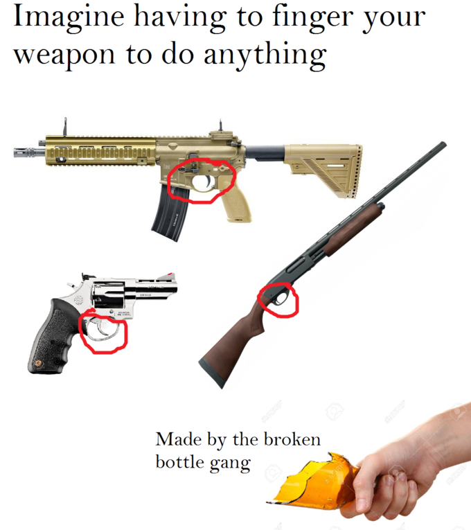 >>521694964>He doesn't give his gun a reach around.Quite rude, innit?