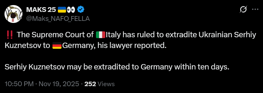 UKRAINE REJECTS THE US-RUSSIAN PEACE PLAN: UKRAINIAN OFFICIALS SAID IT FULLY MEETS THE KREMLIN'S MAXIMALIST DEMANDS AND THAT IT WILL NOT BE IMPLEMENTED IN UKRAINE WITHOUT SIGNIFICANT CHANGES - FT