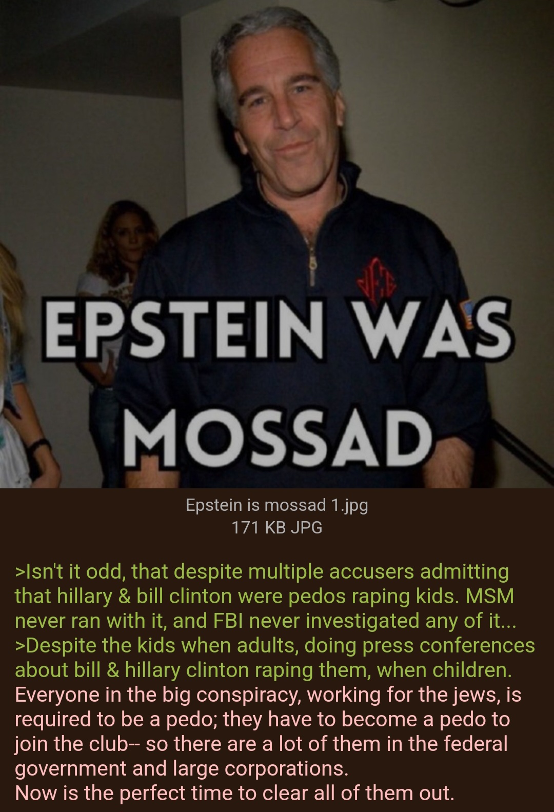 Reminder that Epstein was a blackmail agent working for ISRAEL. Large amount of info here:>>521565349