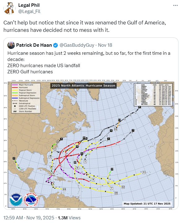 God's plan bish. Look at how every single Hurrican makes a move towards the Gulf of America and then turns around and flees in abject terror from the pure distilled VRIL of Trump's America.