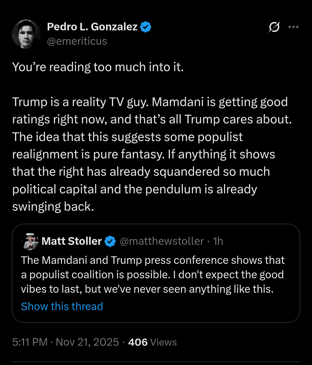 I am asking you to realize that Trump will viciously attack the most principled conservative in the Republican party then turn around and have a kumbaya “we’re really a lot alike” moment with an avowed Muslim socialist.