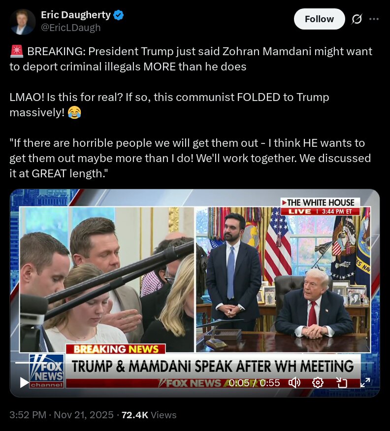 Mamdani is a communist WEF "you'll own nothing piece of shit" and yet Trump FUCKING LOVES HIM. PEOPLE NEED TO REJECT THIS EVIL BASTARD.