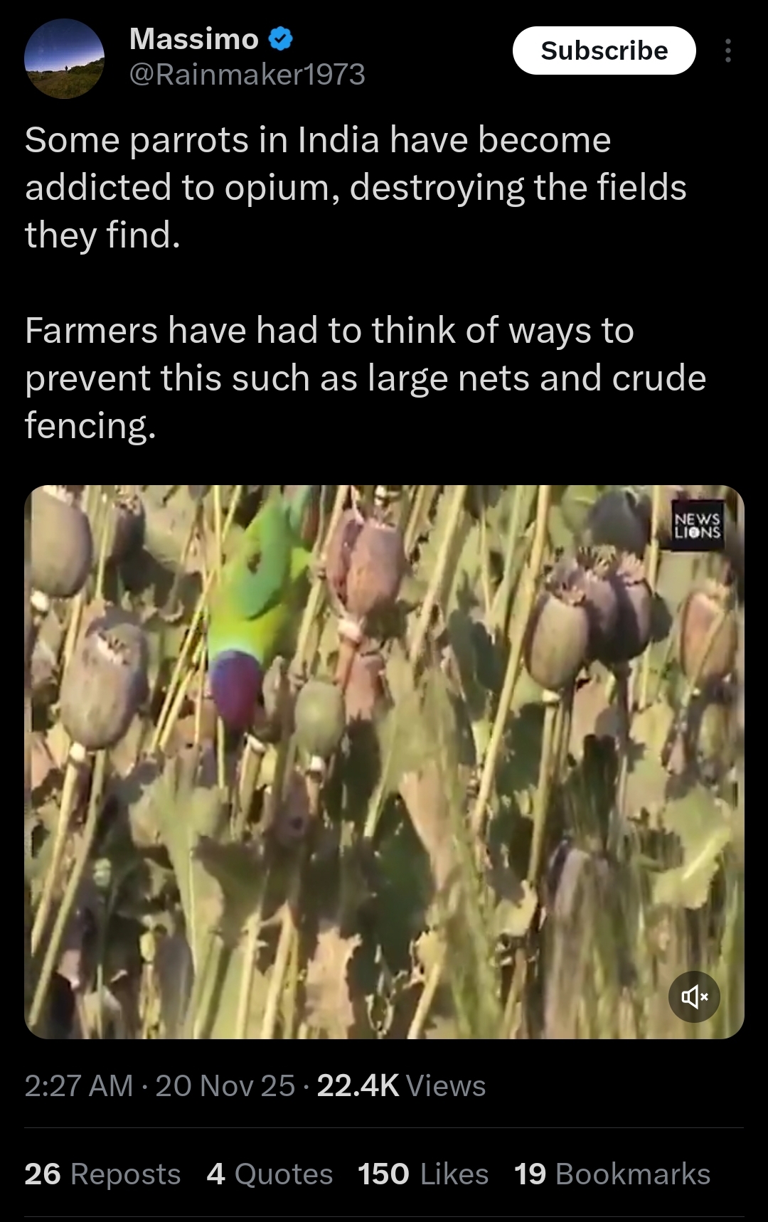 Like a parrot addicted to opium !!