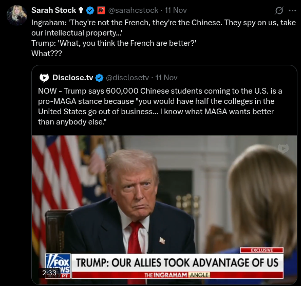 https://xcancel.com/bonchieredstate/status/1991874706925125803#m>BREAKING: MPD Police Chief O’Hara asks for forgiveness for exposing the reality of Somali criminal activity in Minneapolis>He literally has a Somalian translator while he apologizes for enforcing the law. This is insane.All the real Americans died in Grenada