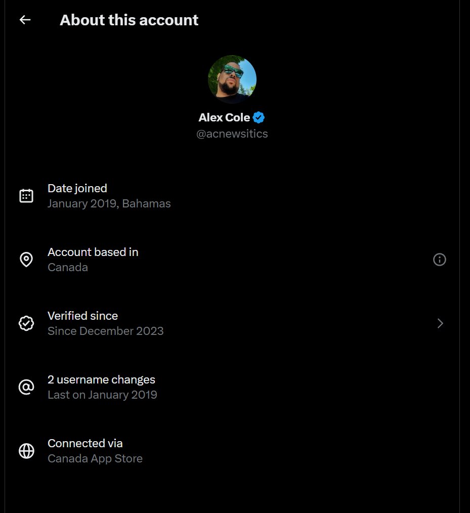 Alex Cole joined twitter from the Bahamas and is based in Canada not Los Angeles, California like he claims he is.
