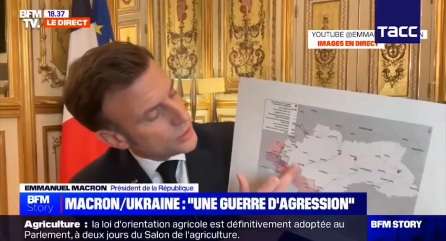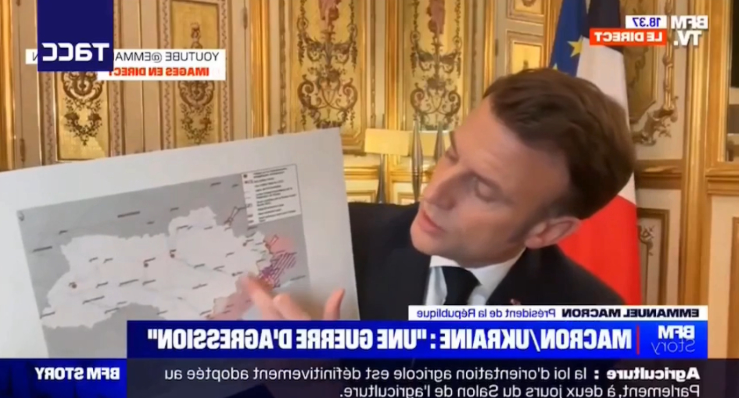 Macron explains the situation. But the maps upside down.