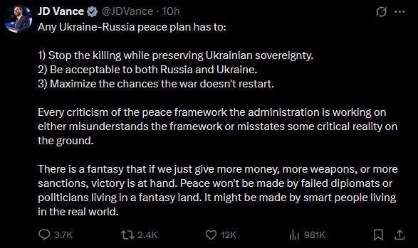 I’m a poor fuck due to many bad life decisions so I need to do food deliveries to earn money.I noticed today alot of Ukrainians, who happen to do the same stuff here, have their face glued to tiktok showing Trump saying some stuff, I can assume what it is about based on the context.They all seem a bit upset, understandably.Though monke himself has made it clear he disagrees with this already onerous peace plan and want even more one-sided demands implemented.There’s no way this one pushes through. Total Hohol sqm-of-land alienation and TZD will proceed.