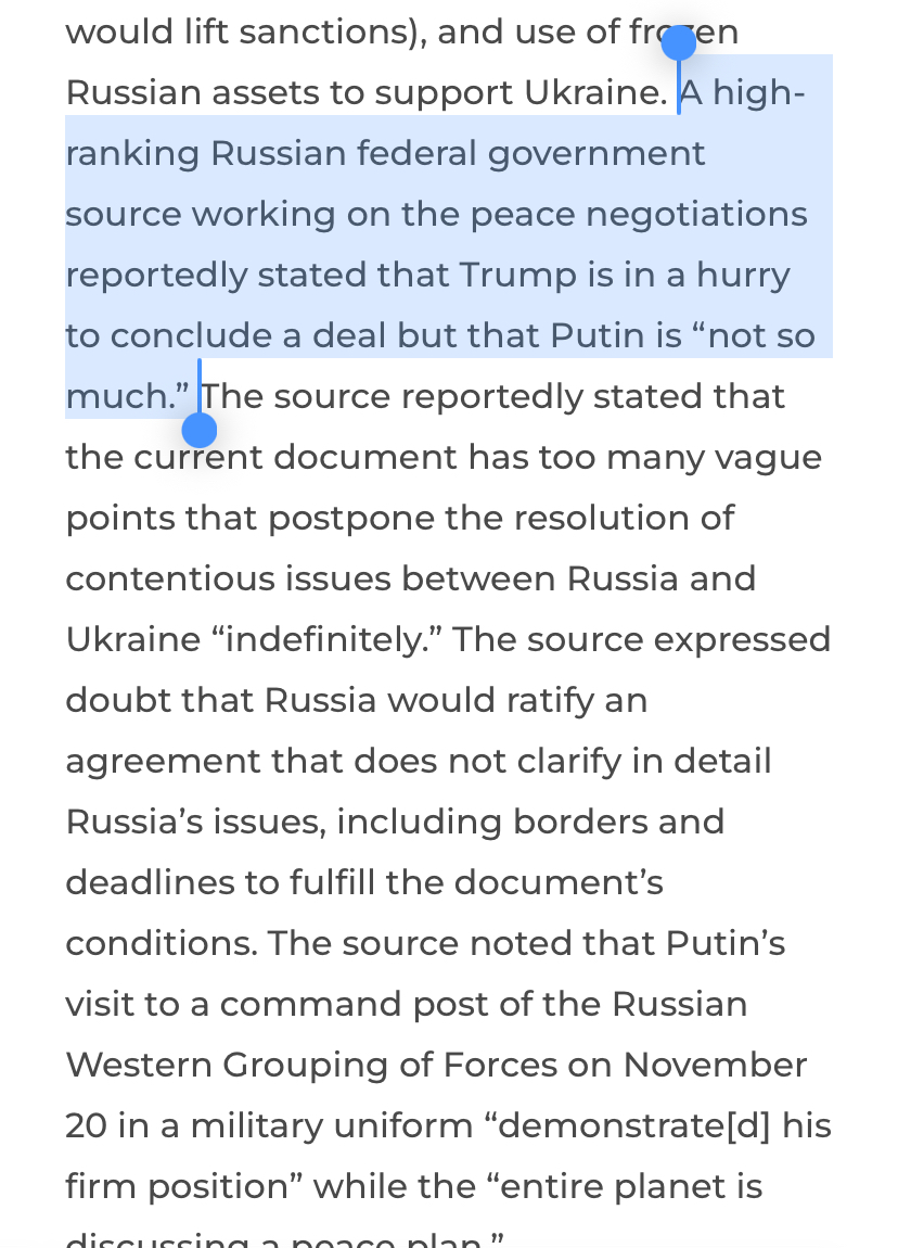 pretty good analysis by our friend William Spaniel about the ridiculousness of Witkoff's peace treatyhttps://www.youtube.com/watch?v=9d9ZRbh5AVY