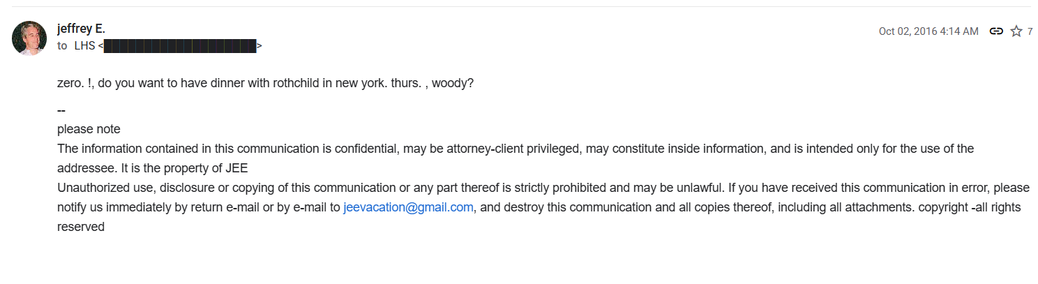 heres epstein casually setting up dinners with rothschildsjust a conspiracy btw guys