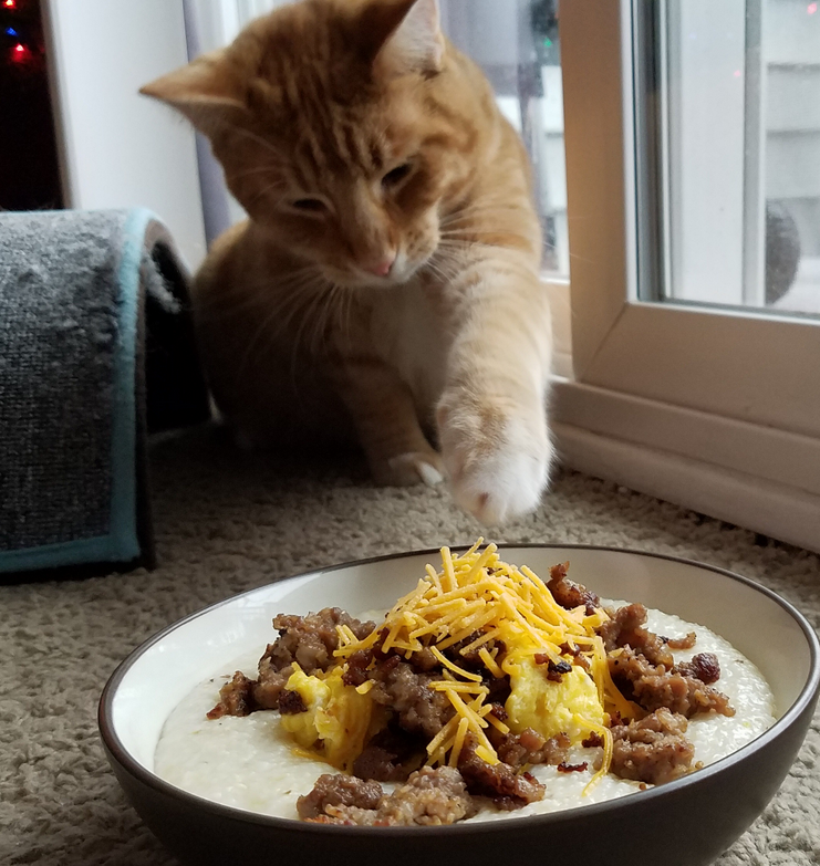 What a beautiful morning for at traditional Caturday breakfast! I hope a very handsome and traditional and dashing and intelligent baker also has an excellent and traditional Caturday morning breakfast.