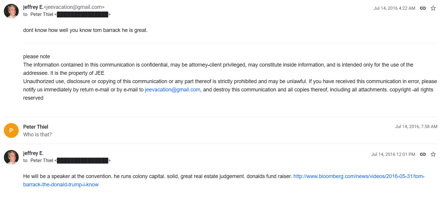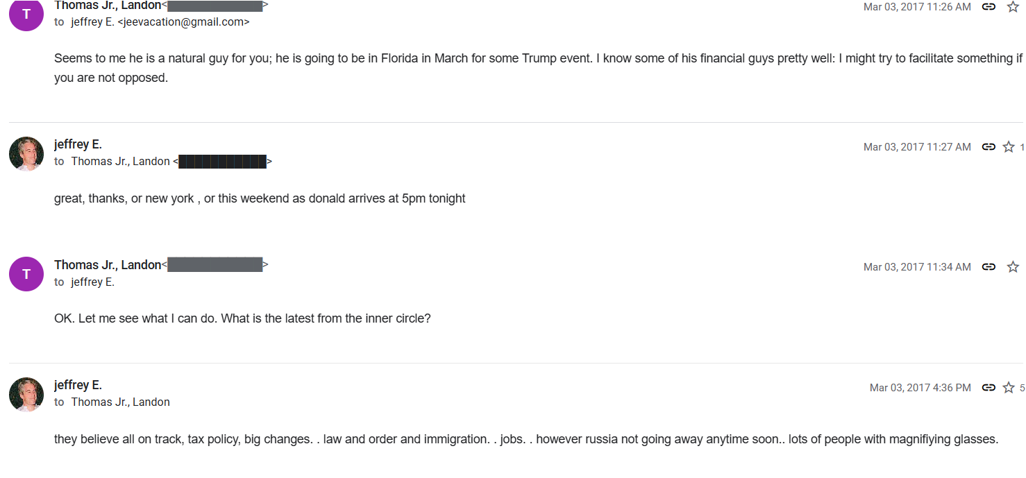 >>521991811seems that he refers to trump as donald fairly oftenjust read the emailsheres an interesting oneepstein promotes trump herehttps://jmail.world/thread/HOUSE_OVERSIGHT_032878?email=7135