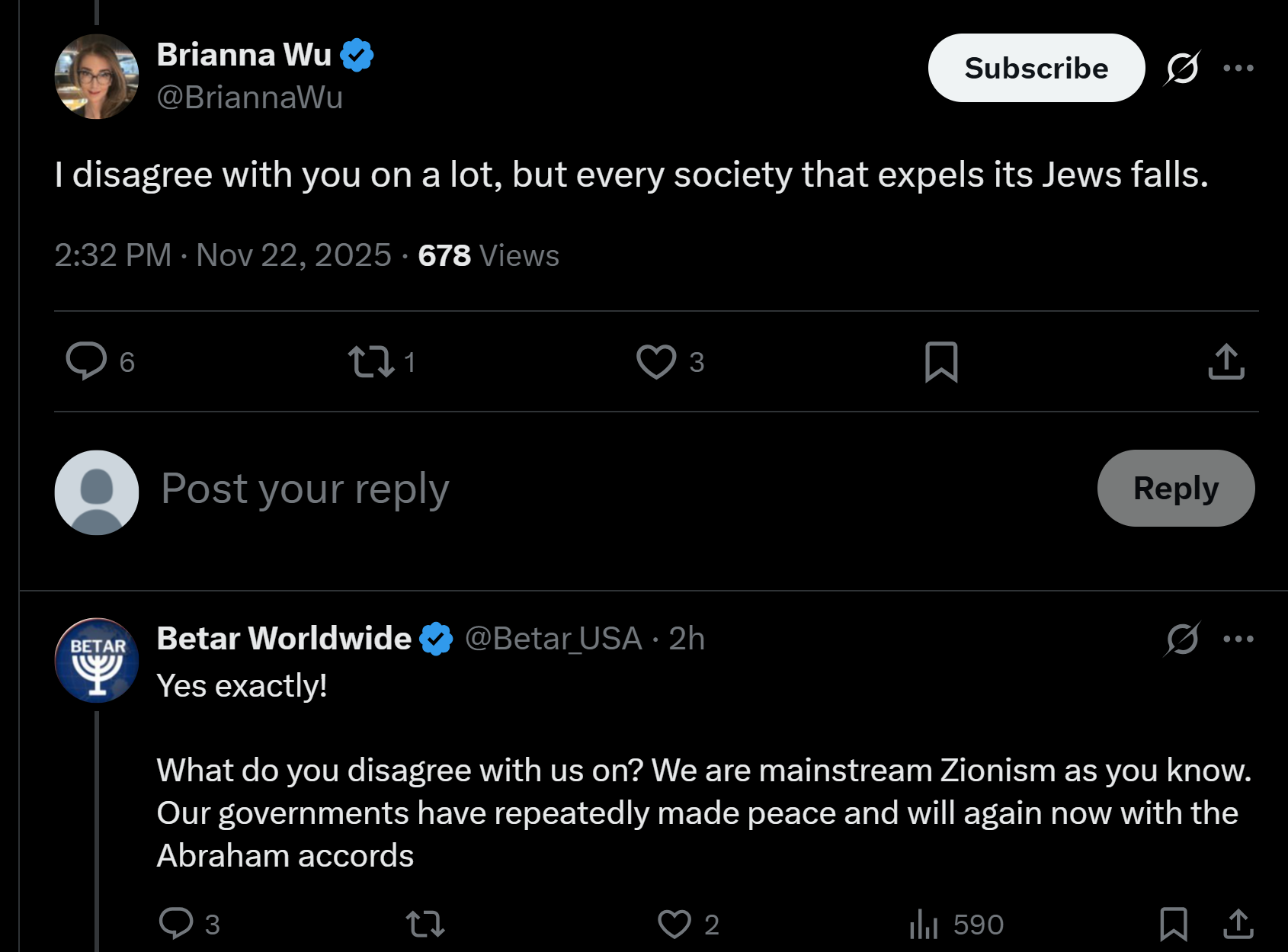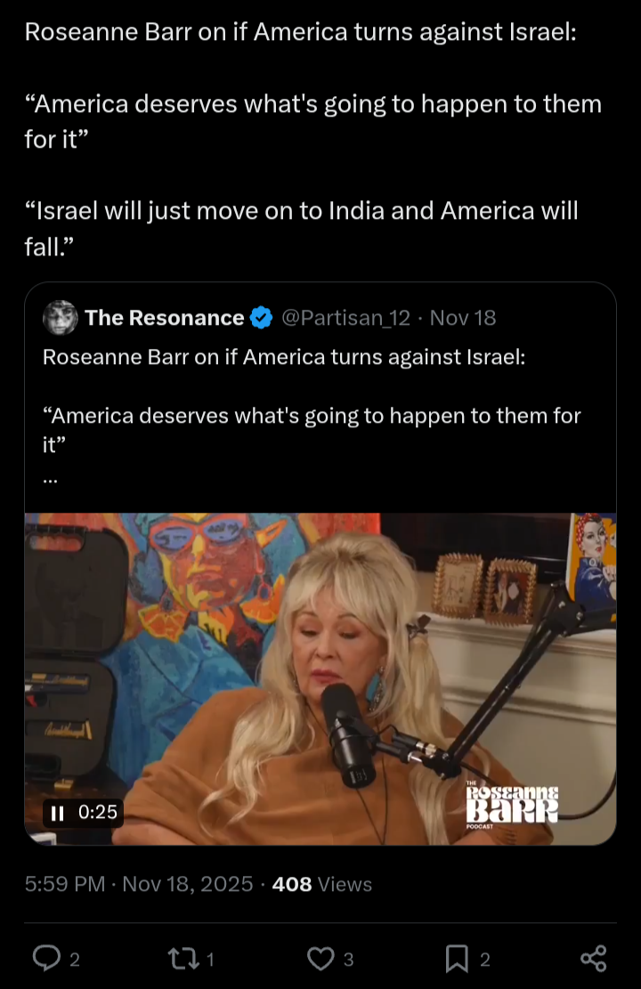 Give us unconditional support or else!>If the Zionists don’t make it in America, America will fall. We promise!>We are the students of Zeev Jabotinsky!https://x.com/Betar_USA/status/1991980581979402389Jabotinsky was a jewish supremacist and founder of Irgun terrorist organization. https://en.wikipedia.org/wiki/Ze'ev_Jabotinsky