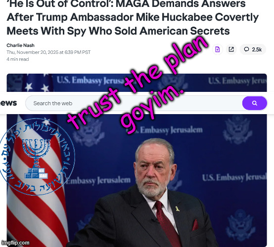 Did Israel attempt to assassinate United States Ambassador to Lebanon John Gunther Dean?https://i.4cdn.org/wsg/1763335782192356.webm>In August 1980, while serving as ambassador to Lebanon, Dean was the target of an assassination attempt, which, evidence dictated, was directed by Israel.[5][6][7] According to him:>Weapons financed and given by the United States to Israel were used in an attempt to kill an American diplomat! Undoubtedly using a proxy, our ally Israel had tried to kill me.https://en.wikipedia.org/wiki/John_Gunther_Dean>According to Ronen Bergman, the front was a "terrorist organization that Israel ran in Lebanon in the years 1980-83" which was set up on the orders of Israel Defense Forces Chief of Staff Rafael Eitan, who instructed Israeli General Avigdor Ben-Gal, together with Meir Dagan, to create and oversee the group in the wake of the 1979 Nahariya attack.[1][2][3]https://en.wikipedia.org/wiki/Front_for_the_Liberation_of_Lebanon_from_Foreigners