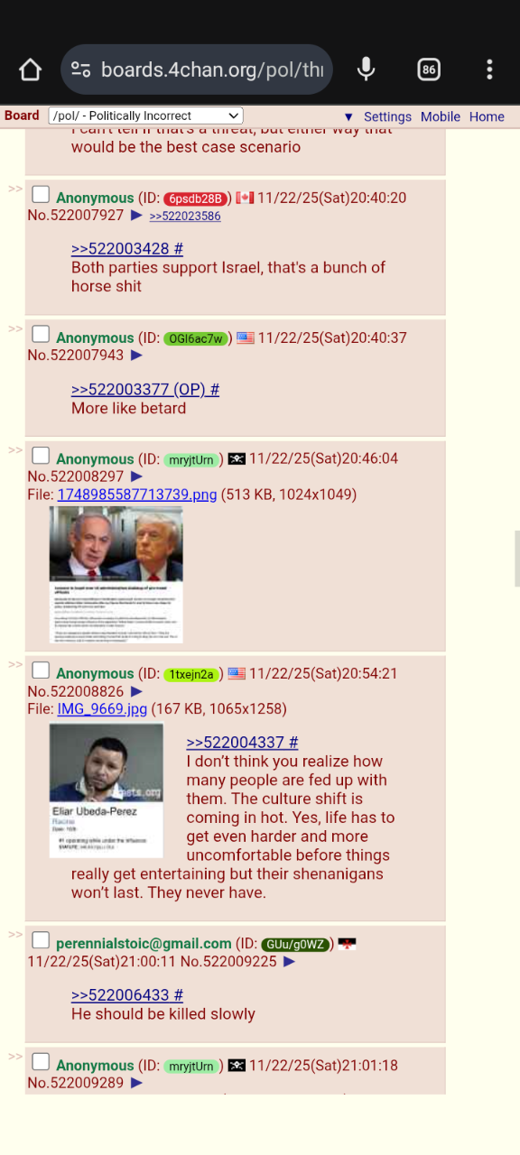 >>522003377>>522003395>>522003428Interesting how they never actually explain *why* American will collapse without extreme Jewish subversion and slavish devotion to Israel.