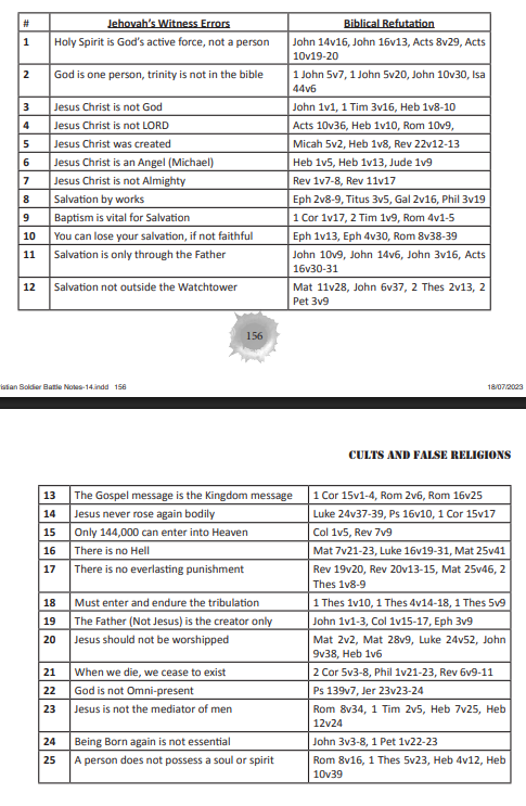 >>522009371>>522009408>>522011329New World Translation (NWT) ‘bible’ ContradictionQ – Did Abraham, Isaac, and Jacob know God by His first name?A – According to the NWT they did. Gen 28v13 “I am Jehovah the God of Abraham your father and the God of Isaac.Yet Jehovah was not known as ‘Jehovah’ until the time of Moses over 300 years after Abraham had died.Exo 6v3 And I appeared unto Abraham, unto Isaac, and unto Jacob, by the name of God Almighty, but by my name JEHOVAH was I not known to them. (AV/KJV) Now look at this verse in the NWT - And I used to appear to Abraham, Isaac, and Jacob as God Almighty, but with regard to my name Jehovah I did not make myself known to them. (Exo 6v3) That shows you what a corrupt and false Satanic counterfeit ‘bible’ the JW’s use.Now check out Gen 28v13 in the AV - And, behold, the LORD stood above it, and said, I am the LORD God of Abraham thy father, and the God of Isaac: the land whereon thou liest, to thee will I give it, and to thy seed; See how accurate that is.The Deity of Jesus Christ – John 1v1, John 5v18, John 5v23, John 8v58 (Exo 3v14), John 10v30- 33, John 17v5, John 20v28, Heb 1v8, Matt 1v23, Col 2v9 etc.2) Only Jehovah God is to be worshipped – Matt 4v10, yet we see Jesus being worshipped and accepting it – Matt 8v2, Matt 9v18, Matt 14v33, Matt 15v25, Matt 28v9+17, Heb 1v6.3) Jehovah God alone created the world – Isa 44v24, yet we see that Jesus created all things – John 1v3+10, Col 1v16+174) We were told that Jehovah God would come Himself to be our Saviour – Isa 35v4 (Isa 45v21) – yet the Apostles who wrote the NT always spoke of Jesus Christ as being the Saviour – Luke 2v11, John 4v42, Titus 1v45) The Doctrine of the Trinity – Luke 1v35, Matt 3v16+17, Acts 3v26 (John 2v19-21, Rom 8v11), Ps 100v3 (Neh 9v6, John 1v3, Col 1v16+17, Job 33v4, Job 26v13, Gen 1v2), Ps 93v2 (Mic 5v2, Isa 9v6, Heb 9v14), 2 Tim 3v16 (1 Pet 1v10, 2 Pet 1v21), 1 Cor 8v6 (John 6v27, John 1v1, John 20v28, Heb 1v8, Acts 5v3+4)