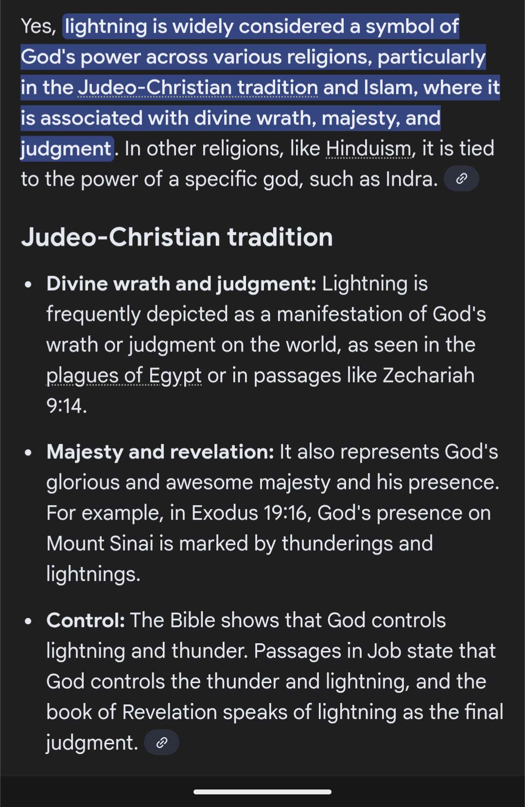 >>522016253I mean that God's power is symbolized by lightning, sort of similar to Zeus>>522016515The fact that it is so similar sets off red flags for me. That's part of why I wish legitimate verifiable writings existed today. It's so ancient now it's sort of melding together with all the other religions from that time. If it's true we should still have similar sort of things and writings going on.