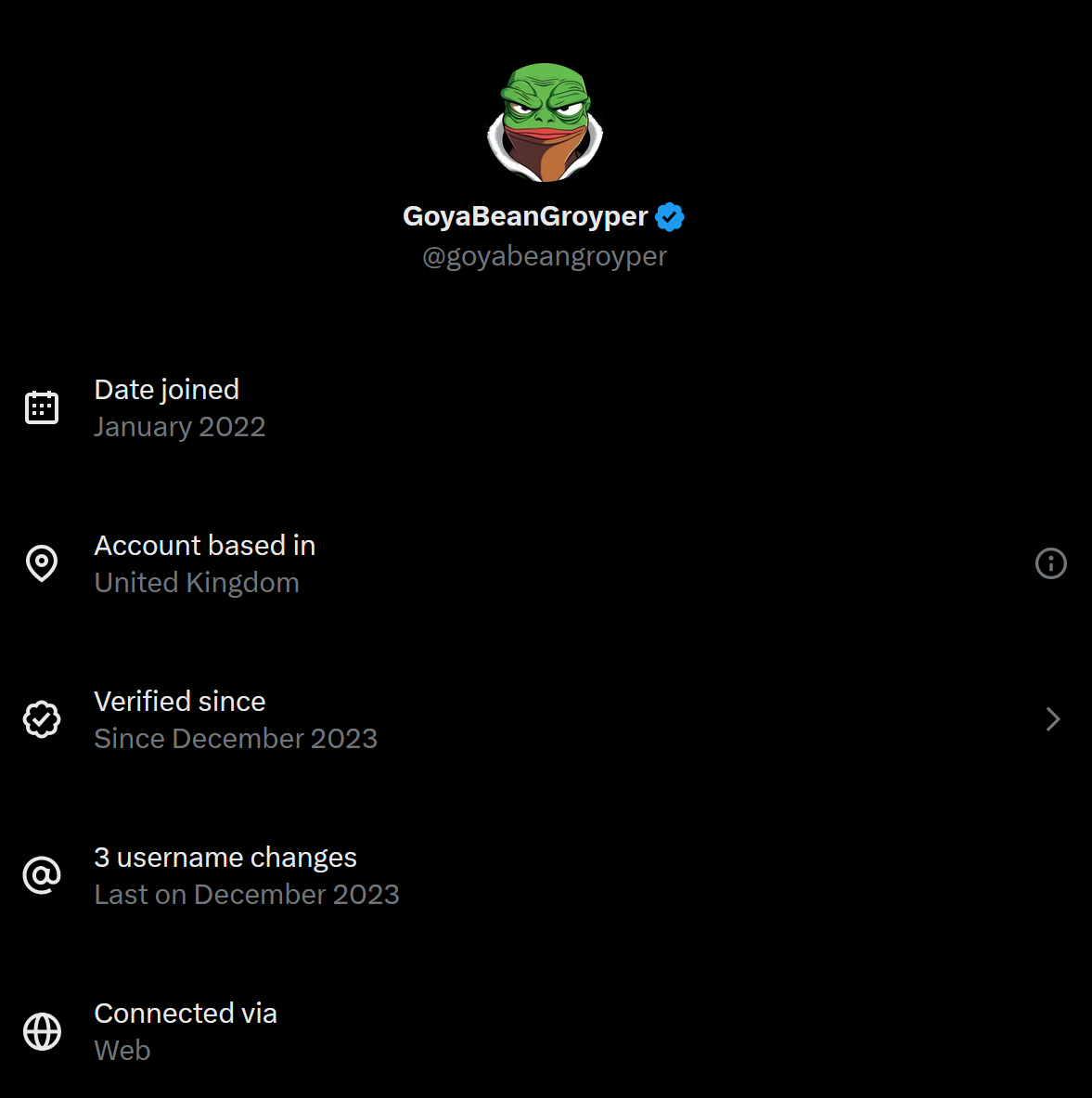 >>522039091There was a "created " section before which they removed for lack of accuracy which was more closely tied to creation IP then there is a based in which seems to try to extrapolate entry IPs, device config, frequent logins but it seems susceptible to spoofing but many people did not try to strictly stick to that.