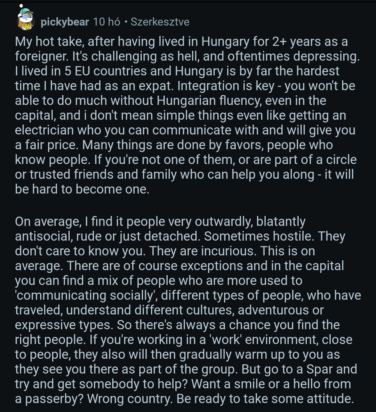 >>522042091You're going to get the same treatment in Baltic countries, Nordic countries, and other Slavic countries. Hell, you'd get much the same treatment in NYC as well.If a foreigner is not marrying into a Hungarian family then they need to fuck off because Hungary is full.