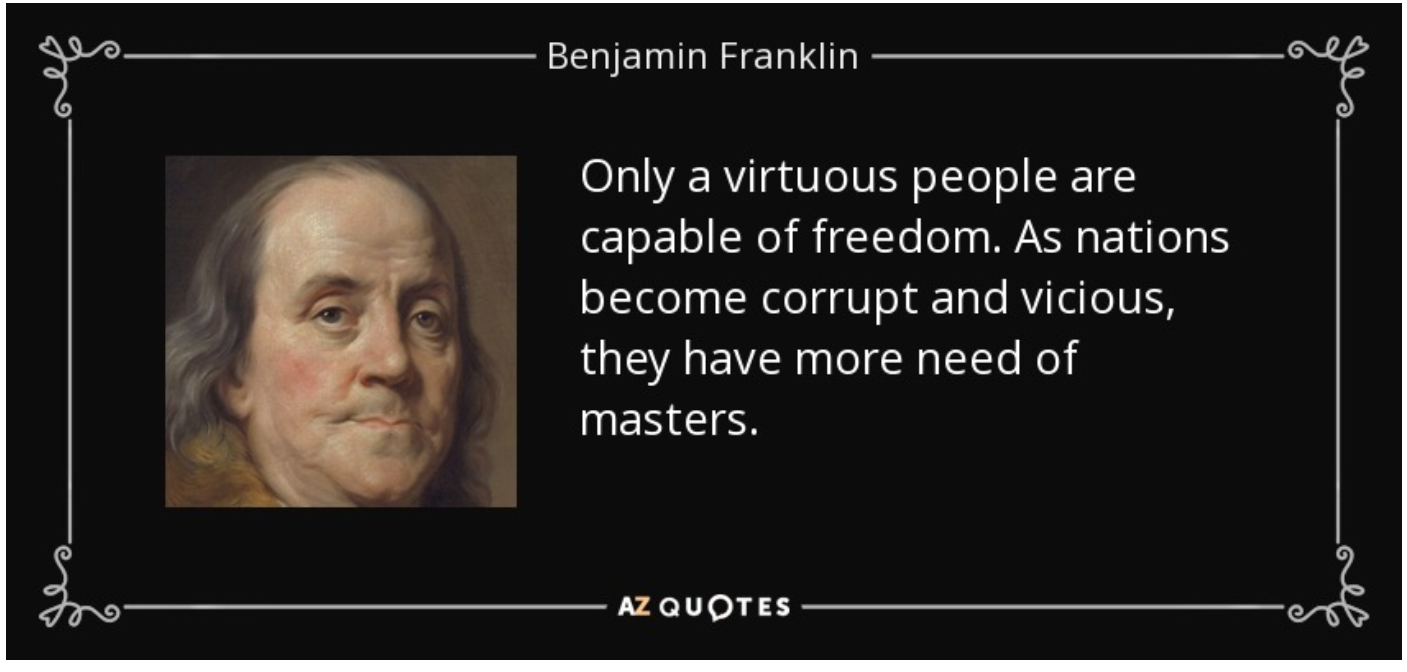 >>522056213the problem is that we've been brainwashed into believing that 'freedom' for it's own sake is a virtue.freedom can only be virtuous in a moral society.America has disconnected itself from it's moral founding.When the moral basis of a society is removed, freedom becomes a vice.People start engaging in all kinds of degeneracy under the banner of 'freedom'This is why America has become a degenerate shithole.