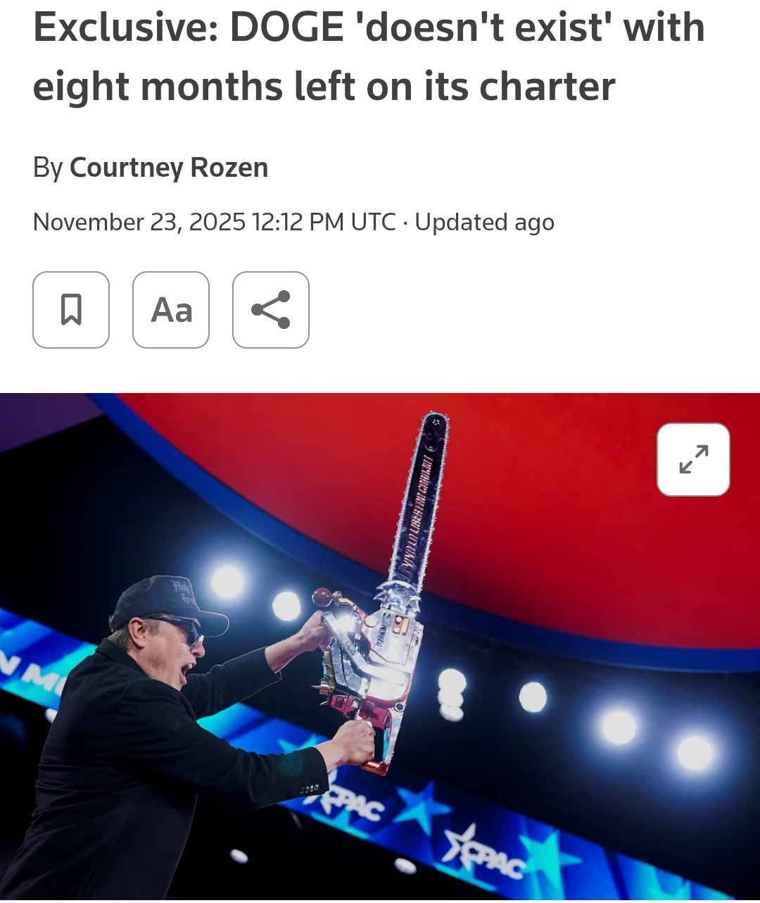 This guy successfully built cars that drive themselves, space rockets that land themselves, and AI that redpills itself. But he couldn't make a dent in government spending?https://www.reuters.com/world/us/doge-doesnt-exist-with-eight-months-left-its-charter-2025-11-23/