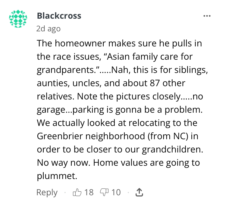 >>522068418It’s not even the HOA. He violated county zoning ordinances. Article commen section is pretty redpilled.>>522068880In-law suites are typically on the first floor because elderly people don’t want to deal with 2 flights of stairs. This looks like multiple rental units.