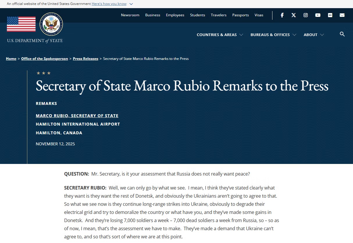 Previous: >>522062148Day 1,369 – Daily assessment: https://understandingwar.org/analysis/russia-ukraine/#research▶Latest>Shatura Plant in mosquew oblast got hit by drones>Marco Rubio announces that the 28 point peace plan was a Russian document, not US one>Zelenskyy discussed latest "peace" plan with NATO Sec.Gen and European partners>Zelenskyy says he won't betray Ukraine>Germany confirms long-range missiles to be acquired by Ukraine>Another Ryazan reFINEry visition + Kursk substation hits>Ukraine says it used an ATACMS on Russian territory>Refineries in Samara + Ryazan regions hit>Voronezh missile engine factory hit>Major Ukie Drone Strike Halts Oil Deliveries at Novorossiysk Terminal>Su-30SM crashed in Karelia, all crew dead>Flamingo flew to Tuapse + NOVOPUSSYISK was hit separately three times at once: port, oil storage, ammo dump>The first Russian region announced an Internet shutdown until the end of the war>The US has frozen negotiations with Russia on normalizing relations>Duma deputy Nikolai Arefiev announced that Russian citizens have “become impoverished”>Ukraine targets Russian energy facilities in Taganrog + Voronezh>Azeris have transferred to NATO doctrine, abandoning russian doctrine citing it as ineffective>'A powerful secondary detonation' Ukraine confirms drone, missile strike on ruz Shahed base at Donetsk airport>Kostroma Station droned Third biggest in Russia + Volgograd reFINEry>HUR + Ru rebels Chernaya Iskra destroy Russian missile equipment + radar in Kursk▶Telegramhttps://rentry.org/telosint2023https://t.me/ukr_pics▶Intelhttps://t.me/DeepStateENhttps://odin.tradoc.army.mil/WEG (equipment explorer)https://ukr.warspotting.net (visually confirmed losses)▶Mapshttps://deepstatemap.live/enhttps://liveuamap.com/en▶DISPOSABLE SOLDIER (diary of a RU mobik)TOUR 1: files.catbox.moe/34fuhc.txtTOUR 2: files.catbox.moe/uj2wut.txtTOUR 3: files.catbox.moe/hmyd98.txtTOUR 4: files.catbox.moe/cdenxe.txt