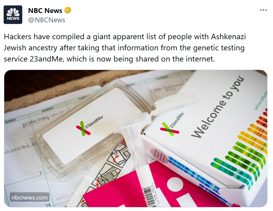 >>522076701>today I will remind themThe next pogroms will be carried out with data gleaned from the 23andMe hack.