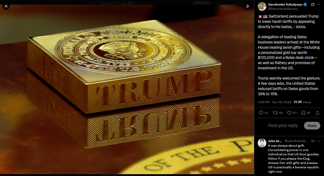 After two rounds of talks, the U.S. and Ukrainian delegations headed to dinner together at Il Lago, the Italian restaurant inside Geneva’s Four Seasons hotel. Secretary of State Marco Rubio and Trump’s envoy Steve Witkoff were among those present. Security forces and police reportedly cleared the area ahead of the gatheringhttps://x.com/NOELreports/status/1992709729282302263?s=20pic 1https://files.catbox.moe/jy6gy3.jpgpic 2https://files.catbox.moe/1r9ypw.jpg>Smells like horse shit reporting>>522093069>Why waste a half billion dollars buying obsolete shit?A T-55?