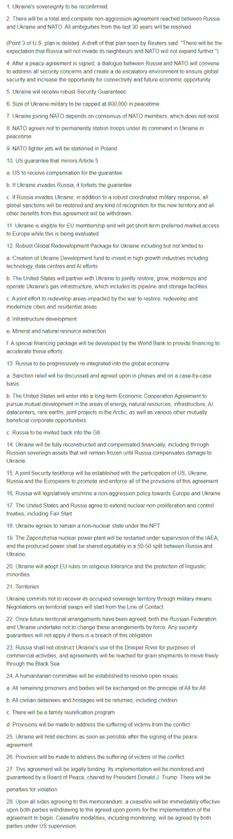 >>522092795>Reuters has published the full 28-point European counter-proposal to the U.S. peace plan for Ukraine. The counter-proposal, drafted by Europe's E3 powers of Britain, France and Germany, takes the U.S. plan as its basis but then goes through it point by point with suggested changes and deletions.pic 2
