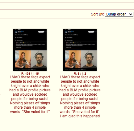 LMAO these fags expect people to riot and white knight over a chick who had a BLM profile picture and wouldve scolded people for being racist.Nothing pisses off simps more than 4 simple words: "She voted for it". I am glad this happened