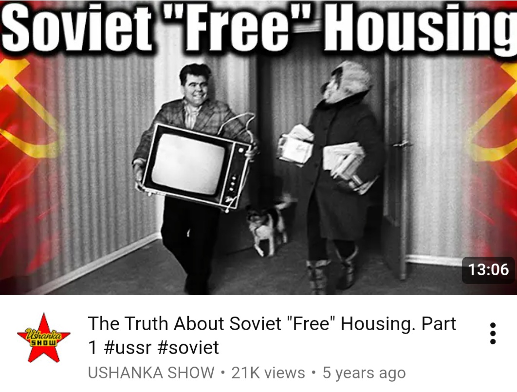>>522103198in the soviet union you waited in line for a commie block apartment. the line was around 20 years long. until then you lived in communal living like a dorm. you could get a loan and pay to move ahead in the line. that is how his family got their apartment, and yes after the collapse the loans were rewritten when the new currency came out. he has a whole series on housing in the ussr.