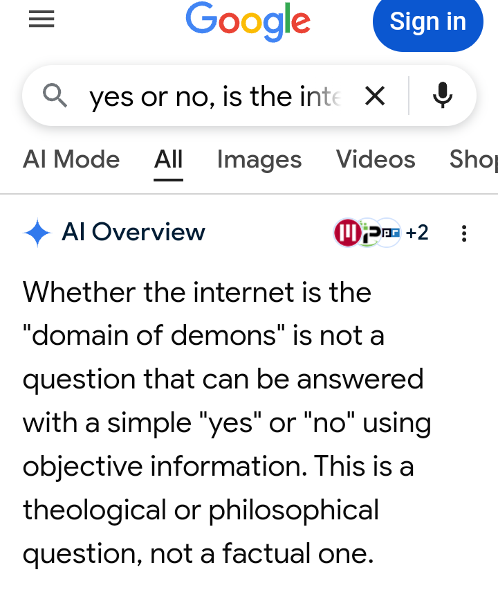 >>522098548Try asking google if the internet is the domain of demons.