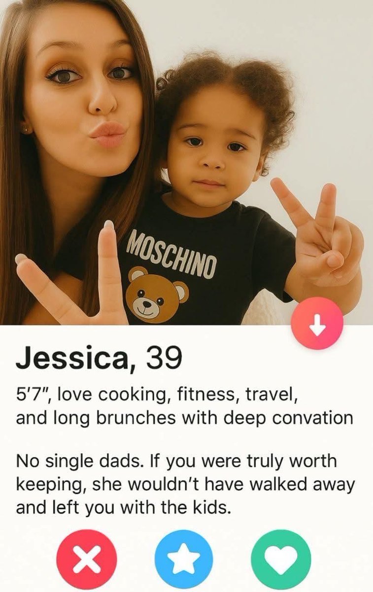 >>522101224It is the usual stuff, she has been pumped and dumped by someone above her paygrade now she wants to make someone male in her situation sufferAside from this getting with a single dad is much less bad for a woman than the reverse since nobody in society expects women to really fill the mother role. Meanwhile if you don't step up to be the kids step father in the literal sense tons of people think you're a bad guy.For more men society is simply not worth participating in anymore, we're reaching critical numbers.