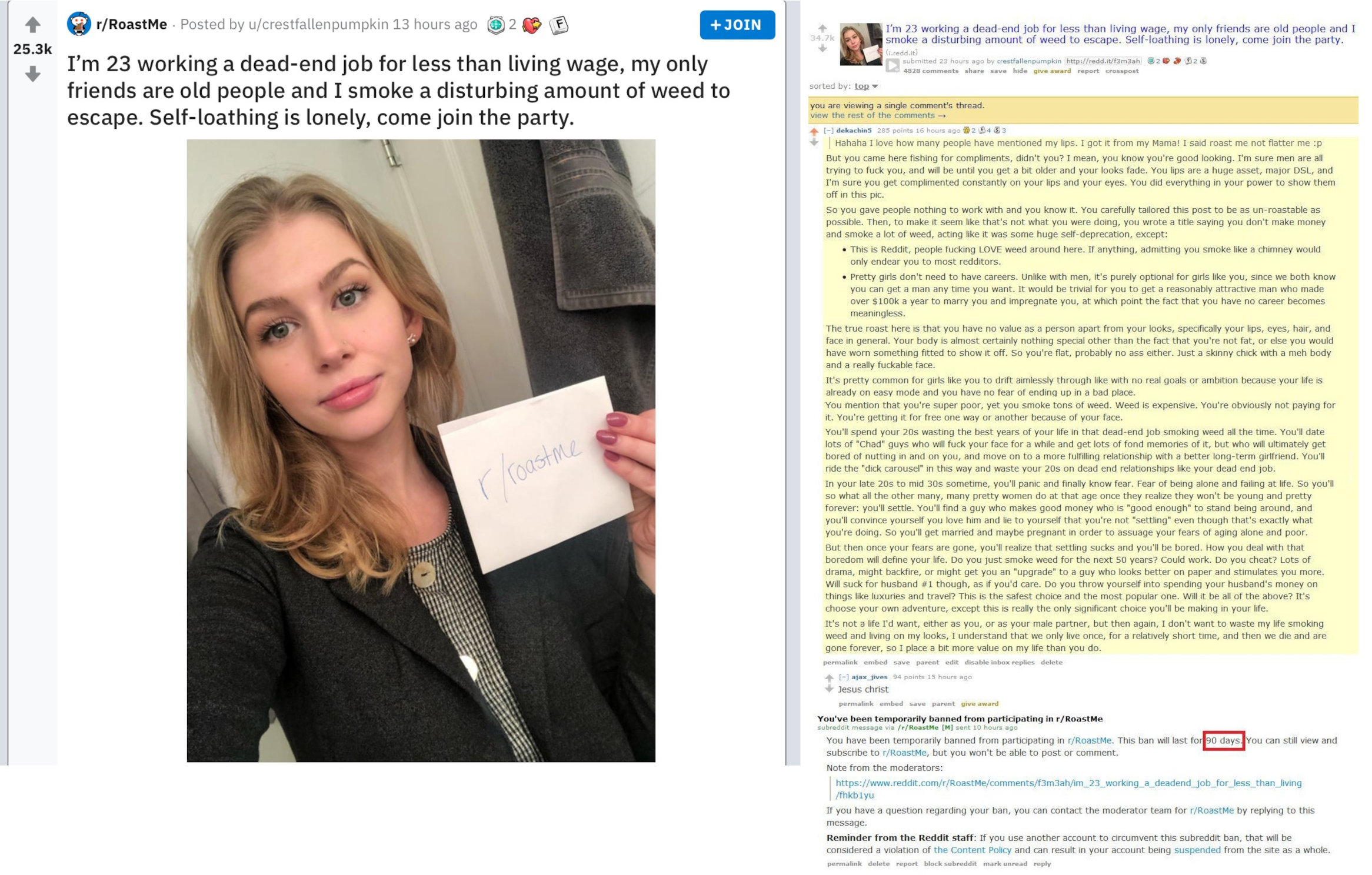 Women have some kind of fuck you dad gene that makes them do the exact opposite a man tells them not to. I’ve seen my mom and sister place their hands on a hot iron after dad says be careful it’s hot, have had a girlfriend do the same to me with a stove. Odds are she had men who cared about her telling her don’t do it but fuck you dad so she had to do it.