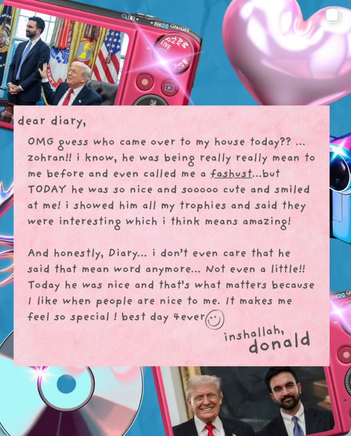 Donald totally mogged Zohran. Made him stand there like staff next to him, sitting in the power chair at the Resolute Desk.Left Zohran flatfooted on the fascism question. Zohran looks bad whatever he said, or nothing, and he was mute. So by omission he calls Trump, who sounded so helpful, a fascist. What a beginner Zohran is.Helpfully, Congress just passed a resolution against socialism. So if Zohran asks for socialist style help or support, Donald can just say he wants to respect the will of Congress, but here are some free market ideas for you ...I very much voted for this, three times.