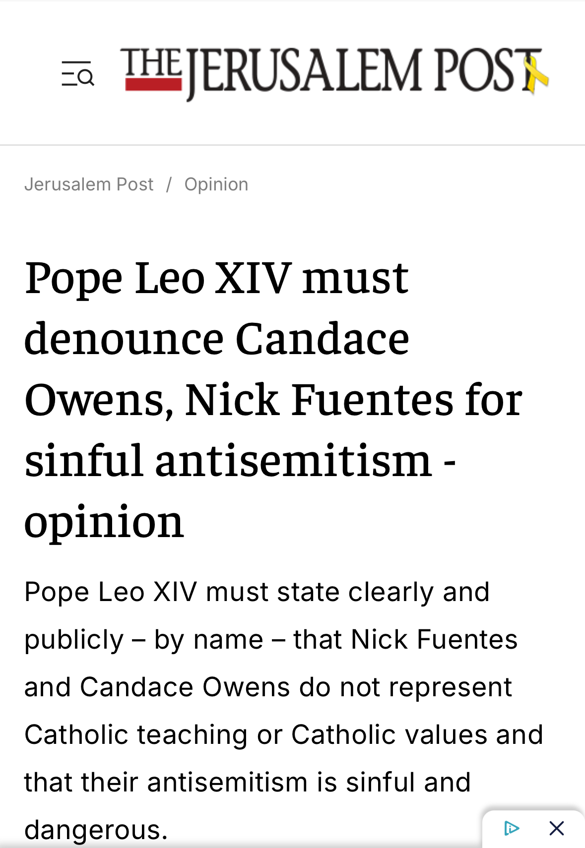 If that happens he basically wins and will shape politics for the next 50+ years Ik its jpost but if the literal vicar of christ decries him by name he will become one of the most important people of the 21st century