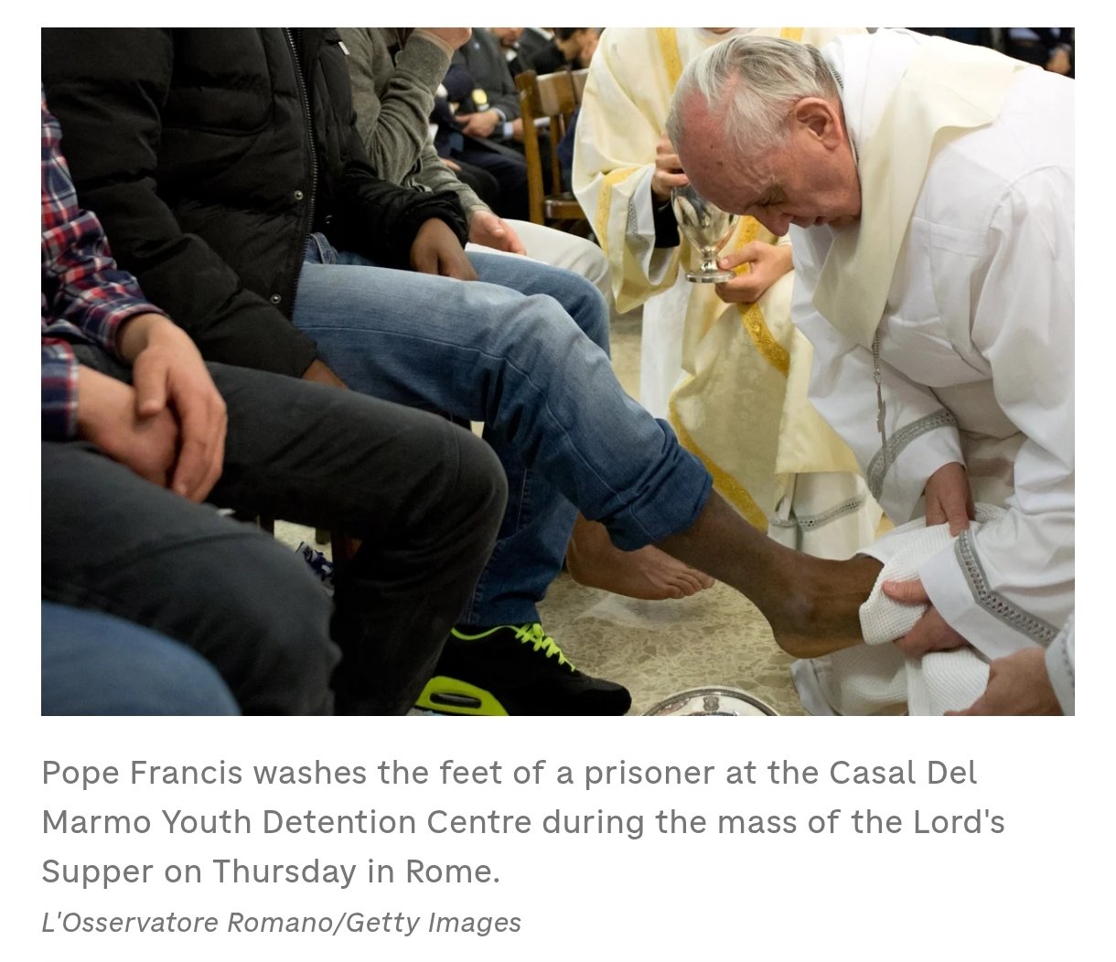 Catholic vermin should volunteer at prisons to wash migrants' feet. Just like their Holy Father showed them."those who humble themselves will be exalted" - Mathew 23*12