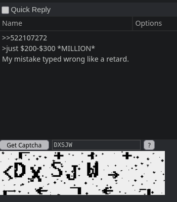 >>522107272>just $200-$300 *MILLION*My mistake typed wrong like a retard.Captcha: DELUXE SJW