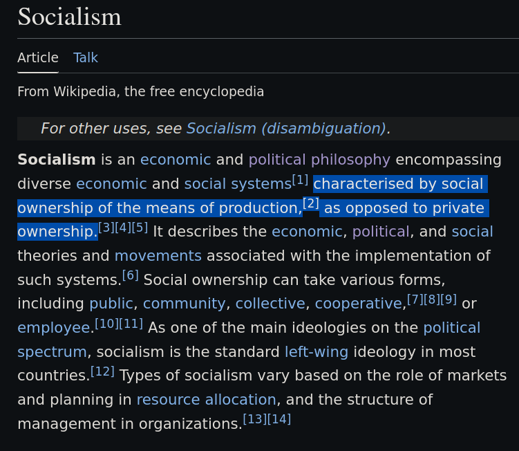 >>522106602>there are like several different types of socialismNo, there is only one type of socialism. You can't enforce non-private ownership of the means of production without authoritarian rule. Don't be about to start confusing welfare states with socialism.