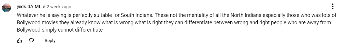 >But its not true in South India